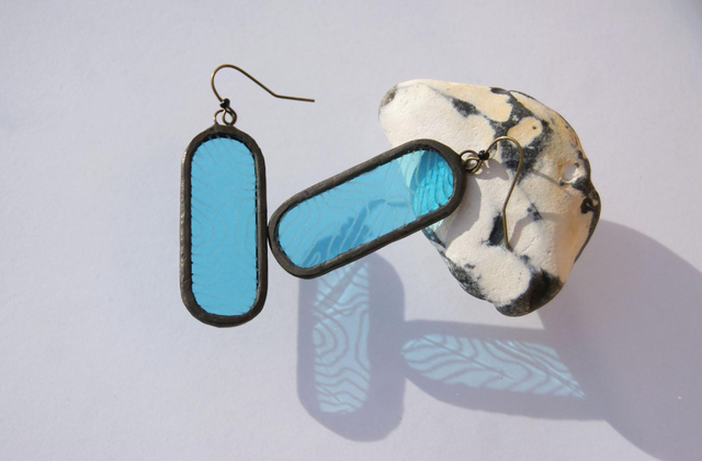 Le verre employé provient de chutes récupérées en atelier; la fabrique de ces boucles est dans un esprit d'upcycling.