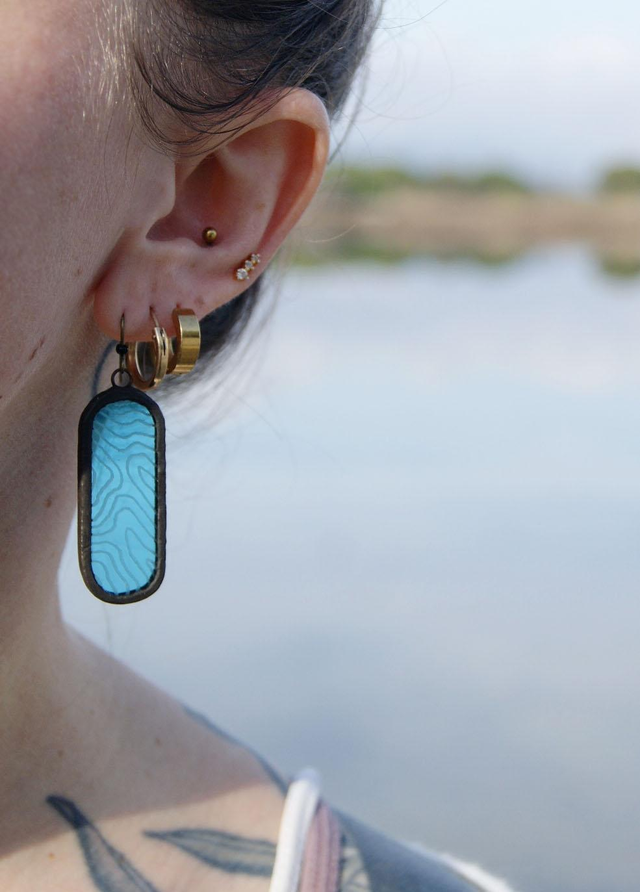 Boucles d'oreilles Cartouches ● Bleu azur gravé