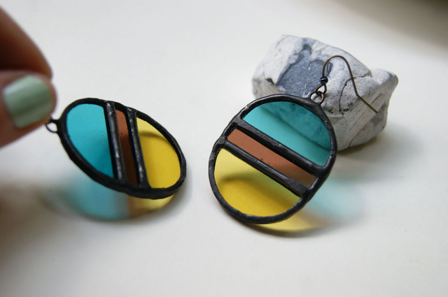 Boucles d'oreilles Tricolores ● Bleu, marron, jaune