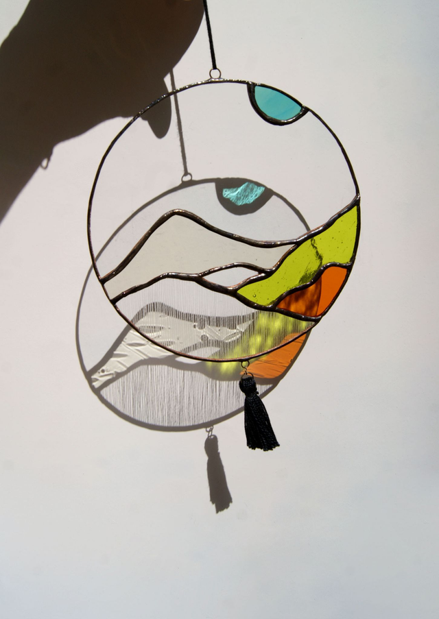 La pièce peut être suspendue dans les airs afin d'animer votre pièce de jeux de lumières ou bien en transparence à proximité d'un vitrage.